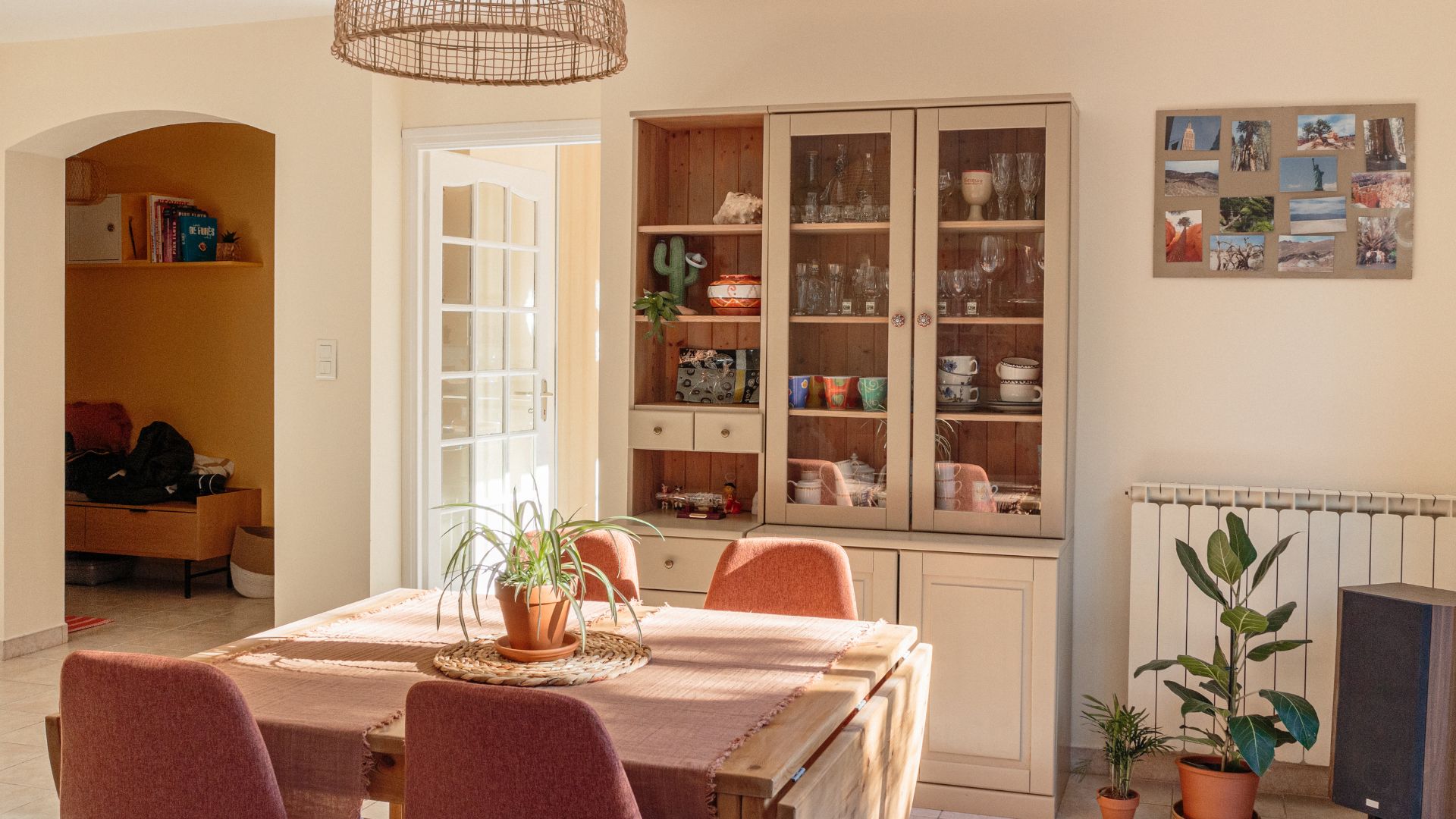 Pour répondre à cette envie, nous avons misé sur le réemploi du mobilier déjà présent et sur l’ajout d’accessoires et d’éclairages soigneusement choisis. Ces touches de modernité apportent une nouvelle ambiance, en harmonie avec l’existant. Les meubles en pin, quant à eux, ont retrouvé un véritable second souffle grâce à une mise en peinture adaptée.