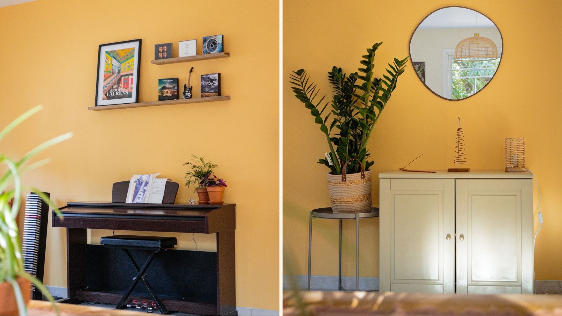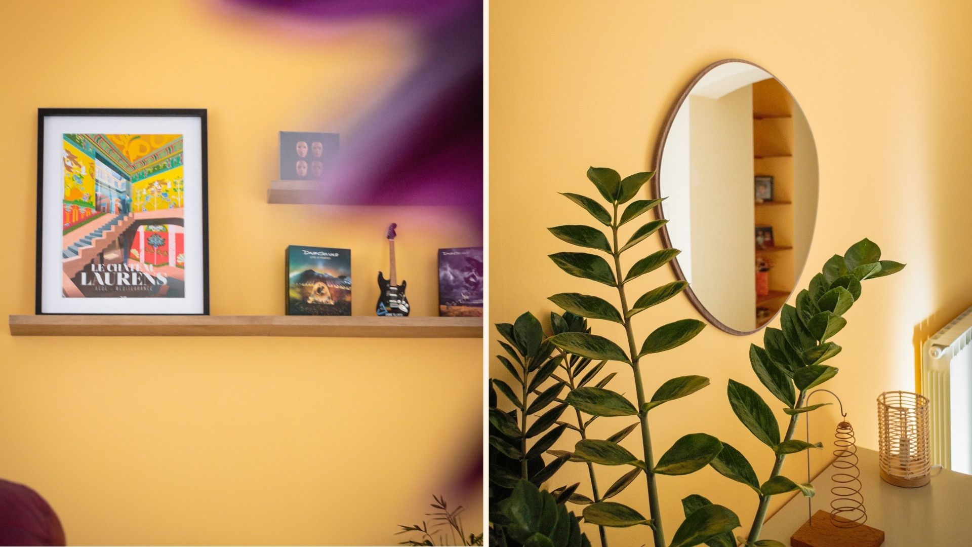 Enfin, les couleurs vives et solaires des peintures et accessoires ont été choisies à partir de planches d’ambiance élaborées en amont, reflétant la personnalité dynamique et affirmée du client.
