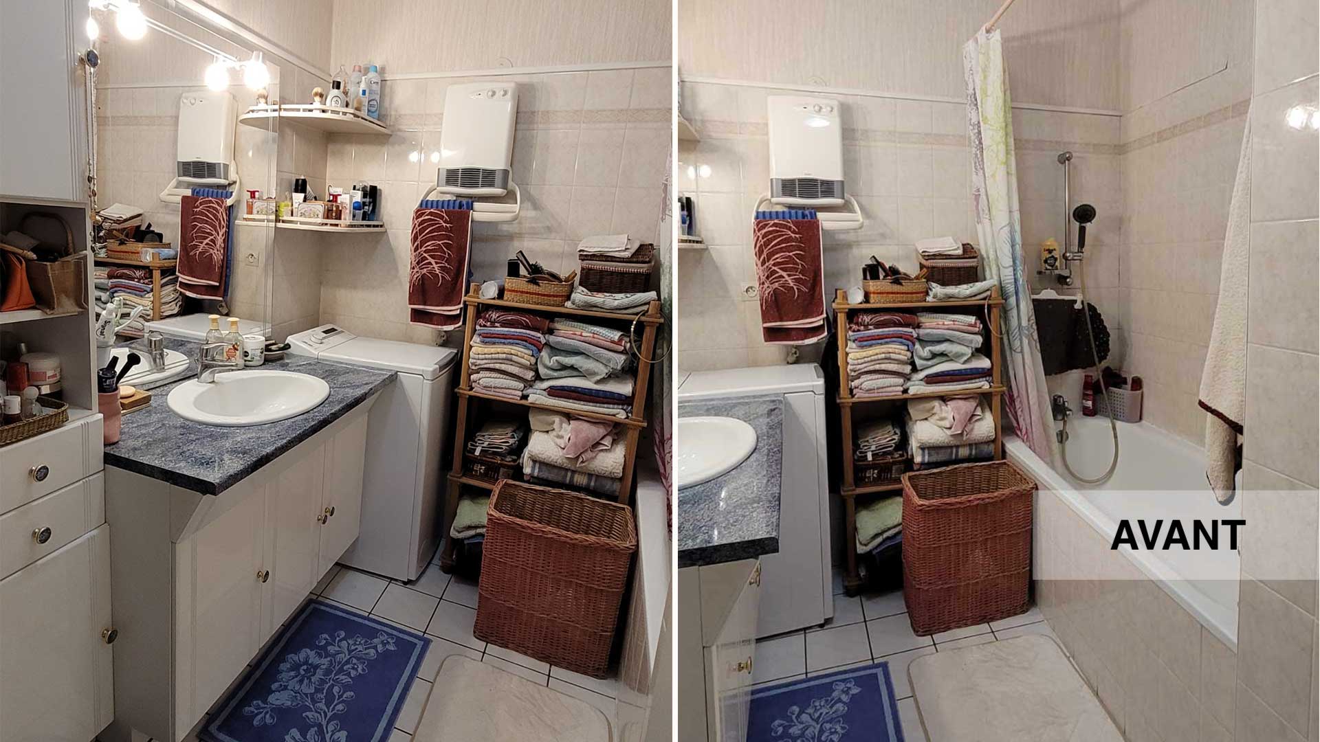 Les clients souhaitaient rénover leur salle de bain pour des raisons d’accessibilité. La baignoire d’origine commençait à les gêner dans leur vie quotidienne. Ils envisageaient de remplacer la baignoire par une douche. Ils voulaient également harmoniser le mobilier, créer des rangements fermés et donner un coup de neuf à cette salle de bain vieillissante.